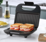 - Posee 2 placas antiadherentes que garantizan un calentamiento uniforme por ambos lados, evitando que el sándwich se adhiera a la superficie.