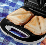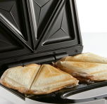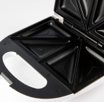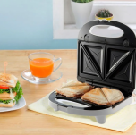 - Su diseño permite preparar hasta 2 sándwiches cuadrados o 4 triángulos con un sellado perfecto, evitando que el relleno se derrame.